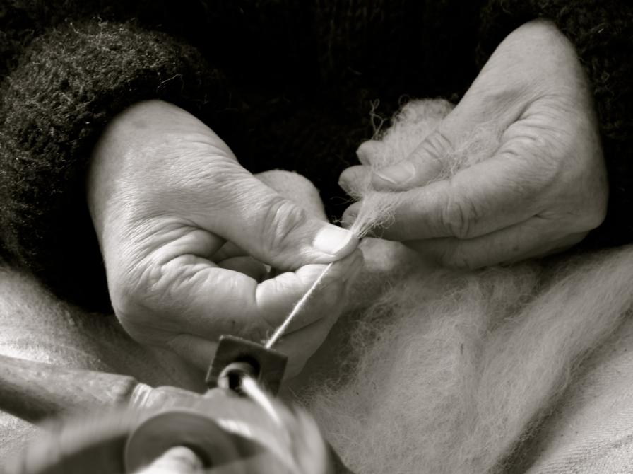 De viser det gamle håndværk og har ekstra udstyr med, så du selv kan prøve at karte uld og spinde den enten på en håndten eller en rok.